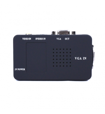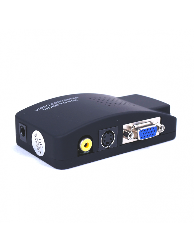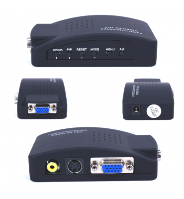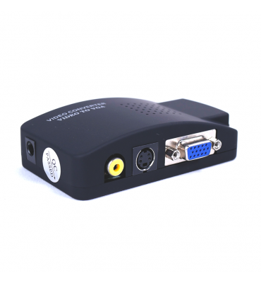 Coversor BNC/RCA y S-VIDEO a VGA. Permite conectar todas las entradas en simultáneo. Se alimenta por USB. Ideal para conectar una PC a un monitor.
