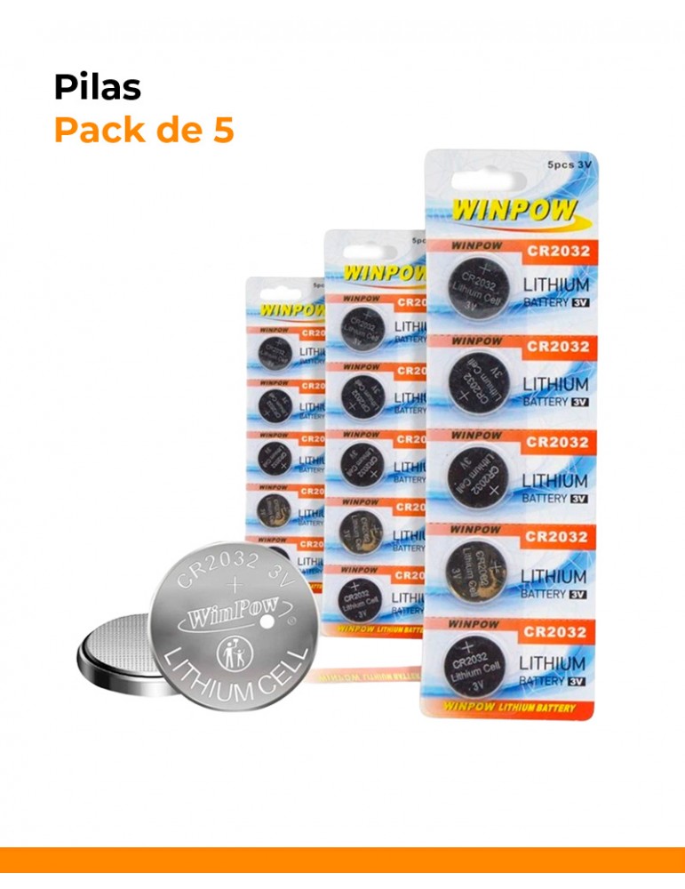Pack de 5 pilas CR2032 de litio 3V tipo botón, ideales para dispositivos electrónicos que requieren energía estable, precisa y de larga duración. Perfectas para controles remotos de portón eléctrico, llaves de auto, balanzas digitales, relojes, calculadoras, luces LED, placas madre (motherboard), cámaras, instrumentos médicos y más.