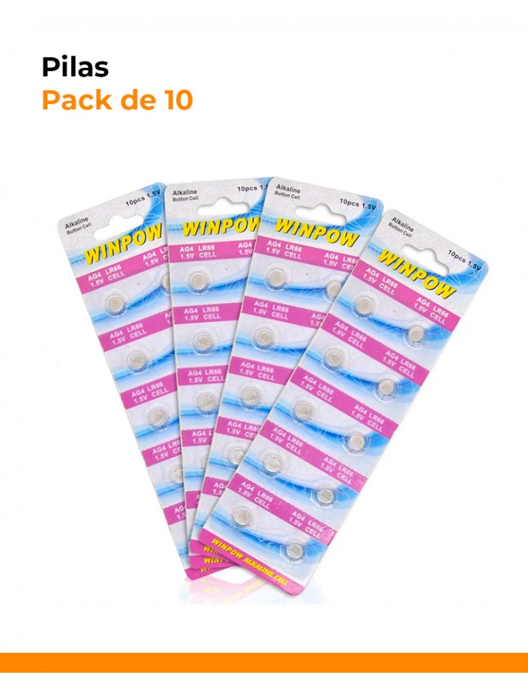 Pack de 10 pilas LR626 tipo botón, también conocidas como AG4, 377A o SR626. Baterías alcalinas diseñadas para ofrecer energía estable, segura y de larga duración en dispositivos electrónicos pequeños. Ideales para relojes, calculadoras, juguetes electrónicos, llaveros con control remoto, termómetros digitales, glucómetros y otros equipos de precisión.