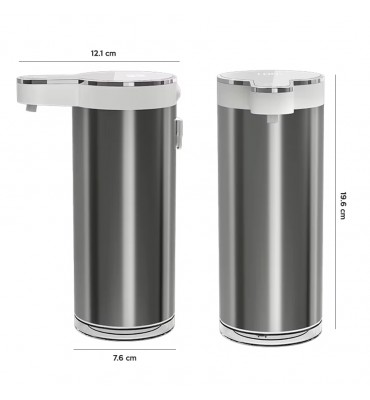 Su batería interna de 1200 mAh con carga USB asegura un funcionamiento prolongado sin necesidad de cables. Además, su certificación IPX6 lo protege contra salpicaduras, permitiendo su uso seguro en zonas húmedas. La estructura en acero inoxidable garantiza durabilidad, resistencia y fácil limpieza. Con un diseño moderno y líneas minimalistas, el dispensador combina estética y funcionalidad. Sus dimensiones de 12.1 X 7.6 X 19.6 cm lo hacen adecuado para diferentes espacios, manteniendo siempre un perfil discreto y eficiente.