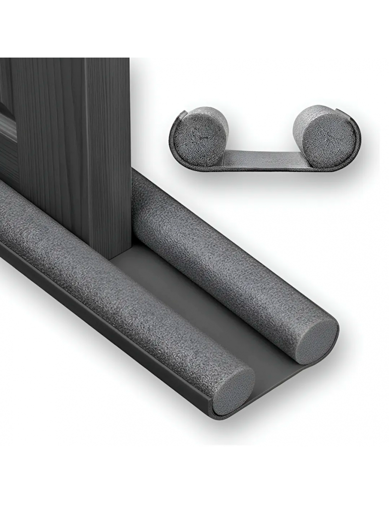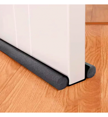 Fabricado en espuma de polietileno, ofrece un excelente sellado gracias a su diseño de doble cilindro, que cubre ambos lados de la puerta al mismo tiempo. Su material es liviano, flexible y resistente, permitiendo una adaptación sencilla a puertas estándar sin necesidad de herramientas ni instalaciones permanentes. Ideal para mejorar el aislamiento térmico y acústico en hogares, oficinas y comercios, ayuda a mantener una temperatura interior más estable y contribuye al ahorro energético.