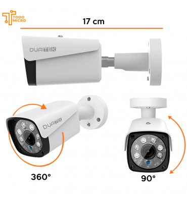 Para la vigilancia nocturna, la cámara está equipada con 6 LED IR de alta eficiencia, que proporcionan una visión clara en la oscuridad hasta una distancia de 10 metros. Con el cambio automático de color a blanco y negro, garantiza una vigilancia continua y efectiva durante todo el día.