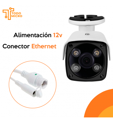 Cámara IP tipo Bullet 3.6mm 4 Led IR POE apta exterior