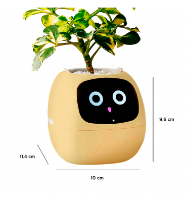 Con inteligencia artificial, IVY muestra expresiones animadas y reconoce gestos, creando una interacción divertida y emocional. A través de su app móvil, permite monitorear humedad, luz y temperatura, enviando recordatorios cuando es momento de regar o cuidar tu planta. Su diseño moderno, compacto y resistente en plástico ABS la convierte en una pieza decorativa ideal para el hogar u oficina.