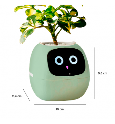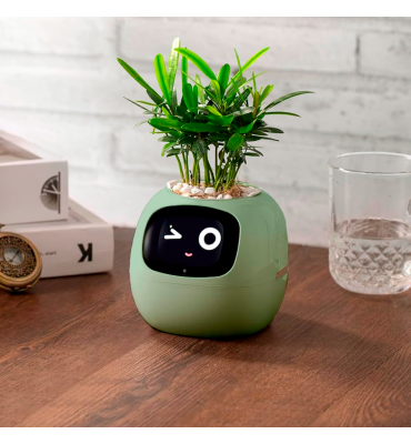 Con inteligencia artificial, IVY muestra expresiones animadas y reconoce gestos, creando una interacción divertida y emocional. A través de su app móvil, permite monitorear humedad, luz y temperatura, enviando recordatorios cuando es momento de regar o cuidar tu planta. Su diseño moderno, compacto y resistente en plástico ABS la convierte en una pieza decorativa ideal para el hogar u oficina.