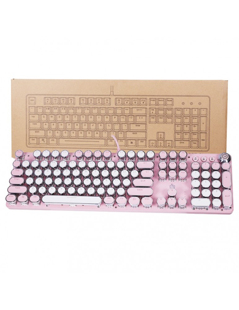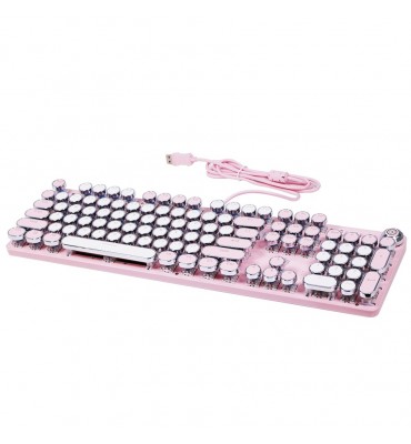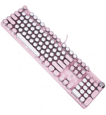 Teclado mecánico estilo máquina de escribir retro, para juegos con cable con retroiluminación blanca pura, teclado retro steampunk vintage de 104 teclas con interruptores azules, teclas redondas con panel de metal.