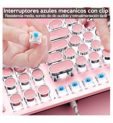 Este teclado mecánico profesional adopta un estilo de máquina de escribir steampunk vintage. Fabricado con panel de metal de primera calidad y cuerpo de plástico resistente, cuenta con una textura de acabado mate que lo hace robusto y resistente a los rasguños. Posee teclado en inglés (no incluye tecla ñ) y dimensiones de 43,2 cm x 12,4 cm, combinando diseño retro con funcionalidad moderna, ideal tanto para uso diario como para regalo.