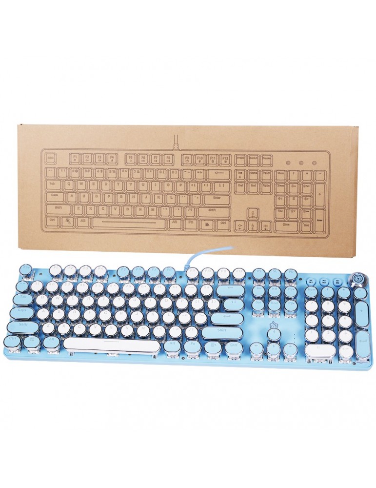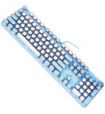 Teclado mecánico estilo máquina de escribir retro,  para juegos con cable con retroiluminación blanca pura, teclado retro steampunk vintage de 104 teclas con interruptores azules, teclas redondas con panel de metal.
