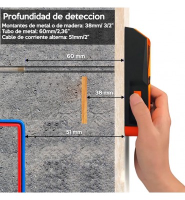 Te permite ubicar correctamente dentro de la pared tuberías metálicas, cables eléctricos vivos, vigas metálicas y de madera.