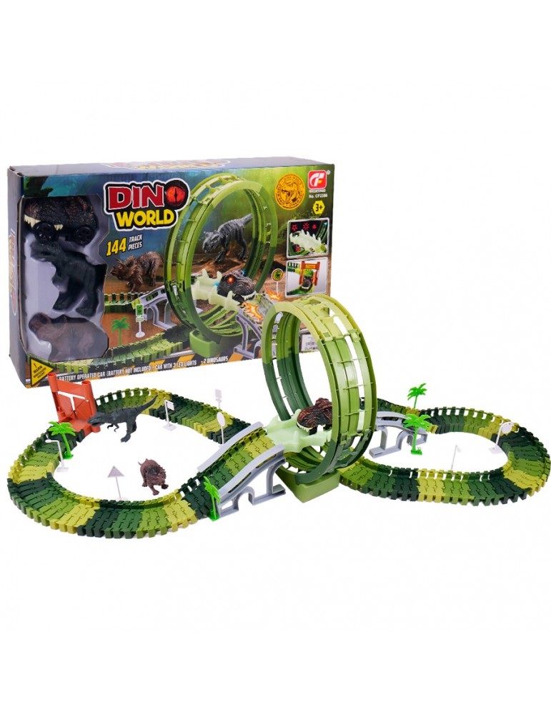 Esta pista de autos dinosaurio de 140 piezas es perfecta para los pequeños amantes de la velocidad. Lleva la diversión prehistórica al siguiente nivel con esta increíble pista de dinosaurios.