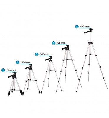 extensible de 35 cm hasta 102 cm, se puede usar en un escritorio  como en una habitación, cuenta con  3 pies de aluminio de 4 sectores con 3 sujetadores  para extender en diferentes tamaños