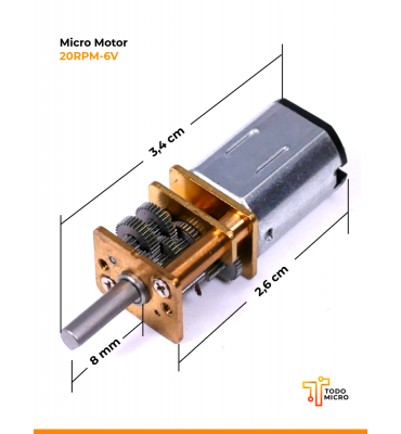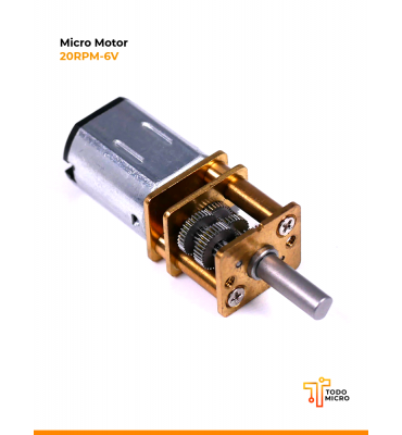 Este micromotor integra un motor DC y una caja reductora (50:1) con engranajes de metal, lo que permite entregar un buen torque y buena velocidad (20RPM).