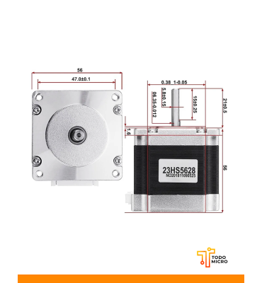 - Motor paso a paso bipolar Nema 23 con 4 cables y de 1.8º (200 pasos por vuelta).