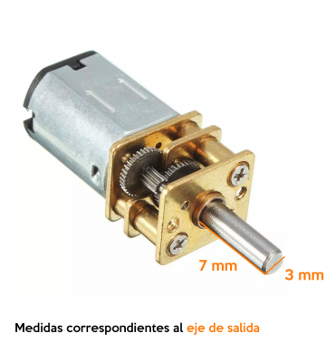 - Velocidad de salida del reductor: 50 RPM a 5 V; 60 RPM a 6 V; 90 RPM a 9 V