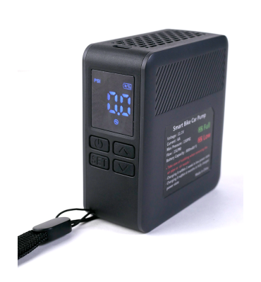 Su batería de 800 mAh ×3 ofrece autonomía suficiente para múltiples inflados, con un flujo de aire de 15 L/min para un inflado rápido y eficiente. Dispone de cuatro modos preestablecidos para bicicletas, motocicletas, balones y automóviles, facilitando su uso con diferentes tipos de neumáticos.
