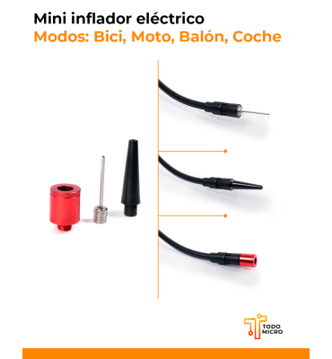 El mini inflador eléctrico para bicicletas y motocicletas es un compresor portátil con un rango de presión de 3 a 150 PSI.