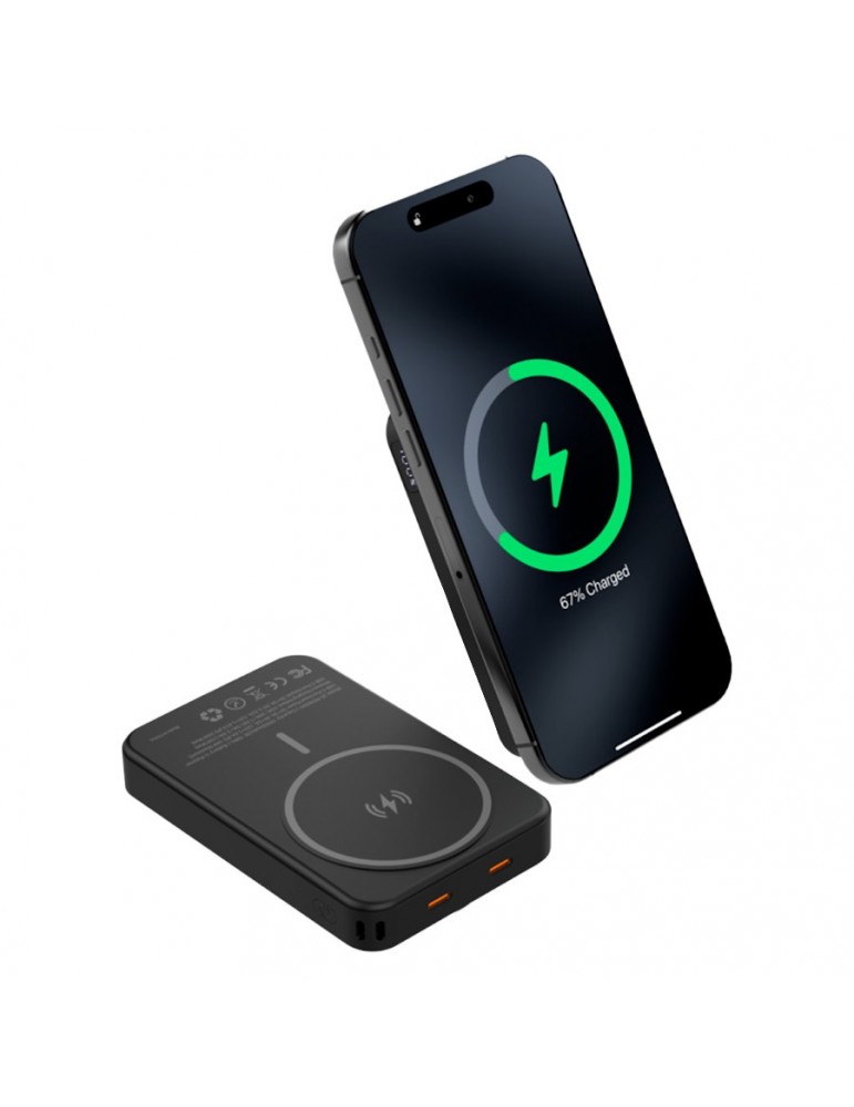 El Cargador Inalámbrico Powerbank MagSafe de 10000 mAh es una solución confiable y de alto rendimiento para mantener tus dispositivos cargados en cualquier momento. Totalmente compatible con el ecosistema Apple, permite recargar de manera inalámbrica iPhone, AirPods y Apple Watch con potencias de hasta 15 W, asegurando eficiencia y rapidez.
