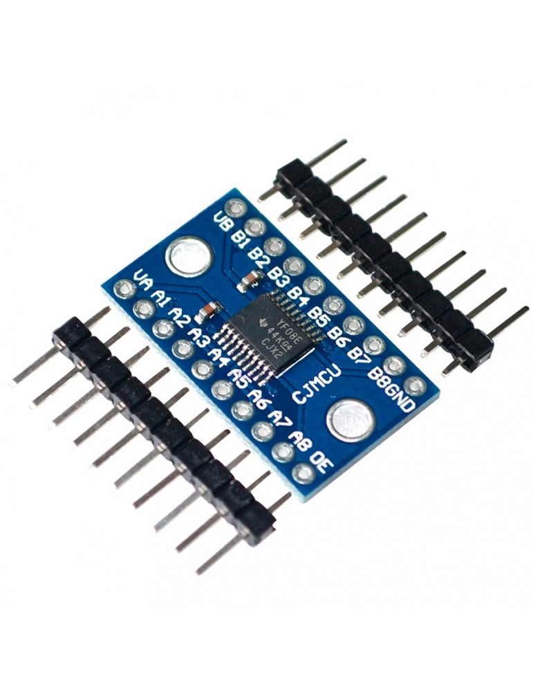 La placa necesita ser alimentada por los dos voltajes a convertir y sólo funciona con señales digitales (niveles altos y bajos), no funciona con señales analógicas, no necesita indicar si el canal se trata de una entrada o salida.