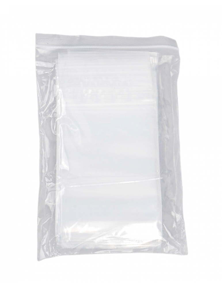 Pack de 100 bolsas tipo Ziploc 10x15 cm con cierre hermético reutilizable. Ideales para organizar, guardar y proteger piezas pequeñas, repuestos, bijouterie y artículos de uso diario.