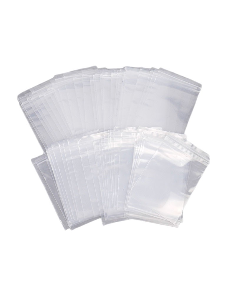 Pack de 100 bolsas tipo Ziploc 10x15 cm con cierre hermético reutilizable. Ideales para organizar, guardar y proteger piezas pequeñas, repuestos, bijouterie y artículos de uso diario.