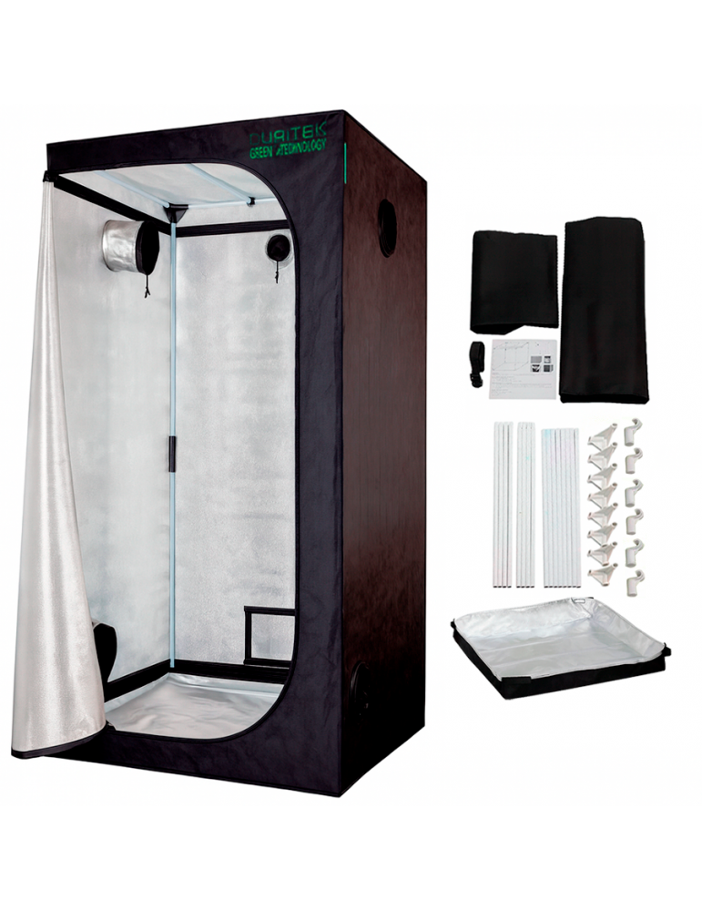 El material policloruro de vinilo y poliester, grueso y resistente a rasgaduras, asegura durabilidad a largo plazo. Su cierre con cremalleras reforzadas y sellos a prueba de luz evitan filtraciones, asegurando un control total sobre el ambiente interno. Además, cuenta con varias entradas y salidas de aire con doble capa de tela, permitiendo una correcta ventilación y el uso de filtros o extractores.