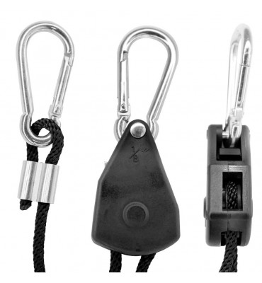 Polea interna plástica y sistema de freno plástico, ajustables soportan todo, desde las piezas más pesadas hasta las más delicadas, son ideales para colgar accesorios iluminación ventilación termo higrómetros y muchas otras cosas en tu indoor, o carpa de cultivo.