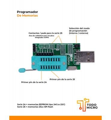 • Compatible con memorias EEPROM serie 24 y memorias SPI serie 25
