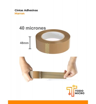 40 micrones de espesor, 48mm de ancho, 100 metros de largo reales, base de polipropileno con adhesivo acrilico, ultraresistente y con adherencia instantánea.