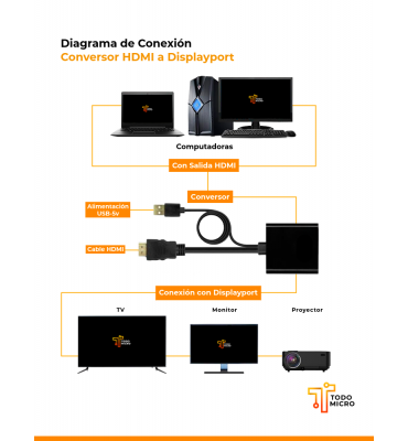 Con este innovador producto usted puede conectar salidas de HDMI como por ejemplo de una placa de video a un TV o proyector con entrada Displayport.