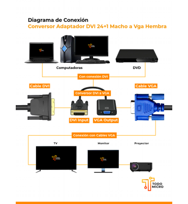- Conversor Adaptador Dvi 24+1 Macho A Vga Hembra