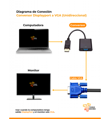 Conversor de factor de forma pequeño y fácil de usar – permite que el DisplayPort sea retrocompatible con su pantalla o proyector VGA No requiere software ni controladores - ofrece una solución plug and play.