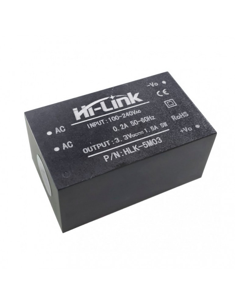 Convierte corriente CA a CC con el Módulo de Fuente de Alimentación HLK-5M03 de 3,3V 5W. Compacto y eficiente, cumple con normas UL/CE, proporcionando alta densidad de potencia, bajo ruido y protección contra sobrecarga y cortocircuito.