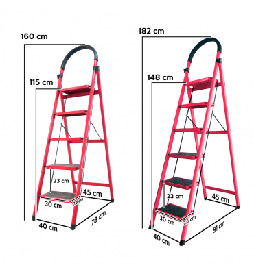 La escalera plegable doméstica de 5 escalones es una herramienta esencial para el hogar, proporcionando una solución práctica, liviana y segura para alcanzar estanterías, realizar reparaciones o facilitar tareas de limpieza. Su diseño plegable permite almacenarla y transportarla con facilidad, ocupando un espacio mínimo cuando no está en uso.