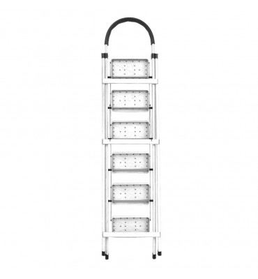 La escalera plegable doméstica de 6 escalones es una herramienta esencial para el hogar, proporcionando una solución práctica, liviana y segura para alcanzar estanterías, realizar reparaciones o facilitar tareas de limpieza. Su diseño plegable permite almacenarla y transportarla con facilidad, ocupando un espacio mínimo cuando no está en uso.