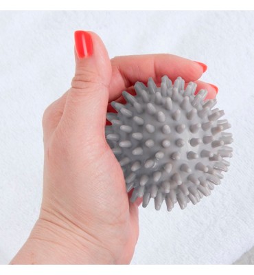 Con un diámetro de 7.5 cm, su tamaño compacto facilita su uso en diferentes partes del cuerpo, como cuello, espalda, piernas o pies, y también se adapta perfectamente a las manos de los niños. En el ámbito terapéutico y educativo, puede emplearse en juegos sensoriales o actividades escolares, ayudando a mejorar la concentración, el enfoque y la autorregulación emocional.