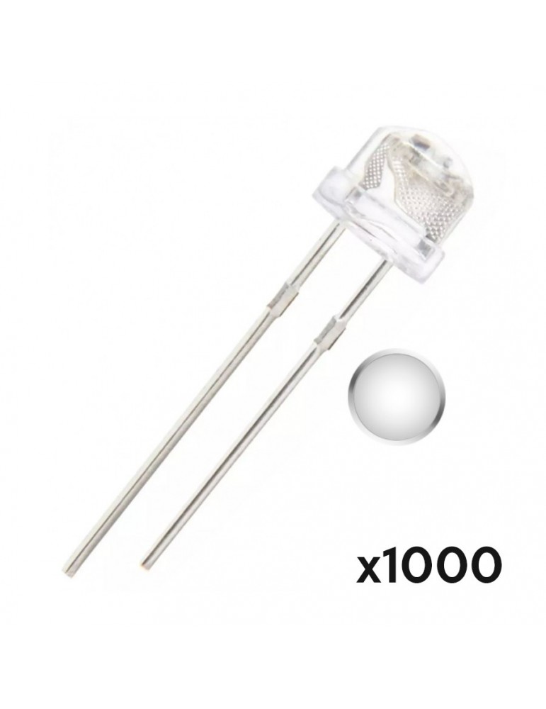 Kit de 1000 leds straw hat 5mm de alta luminosidad, con encapsulado transparente y cabeza bombin. ideal para proyectos, carteles, iluminación, etc.