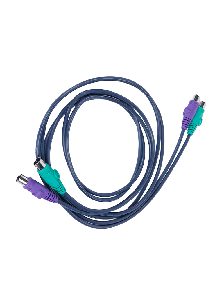Fabricado con materiales de alta calidad, asegura una transmisión confiable de datos y una conexión estable. Los conectores están codificados por color —verde para el mouse y violeta para el teclado—, permitiendo una identificación rápida y precisa durante la instalación.