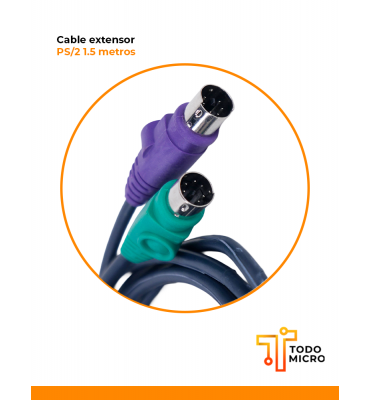 Cable extensor KVM PS/2 de 1,5 metros, ideal para alargar la conexión de mouse y teclado en sistemas con ficha PS/2.