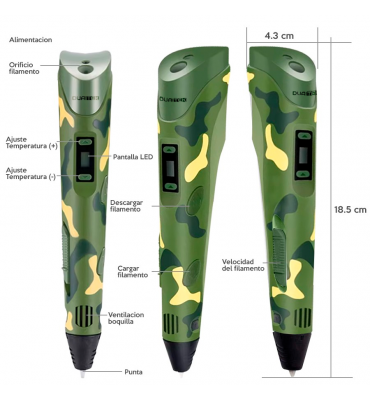 • Lápiz impresor 3D. Permite escribir (imprimir 3D) sobre superficies o en el ”Aire”, permite hacer todo tipo de trazos y figuras.