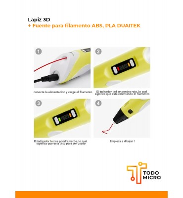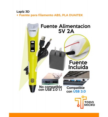 Lapiz 3D + Fuente para filamento ABS, PLA DUAITEK