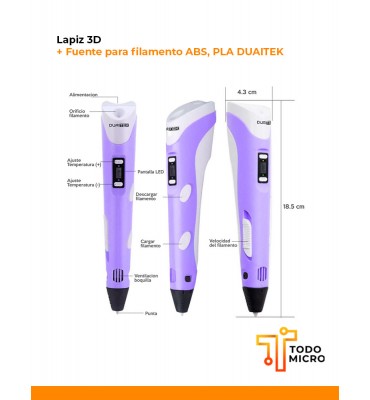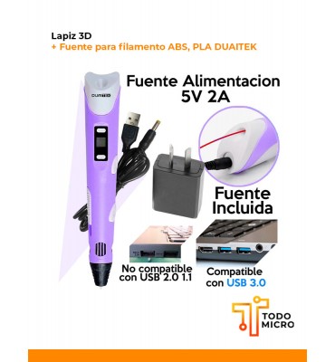 Lapiz 3D + Fuente para filamento ABS, PLA DUAITEK