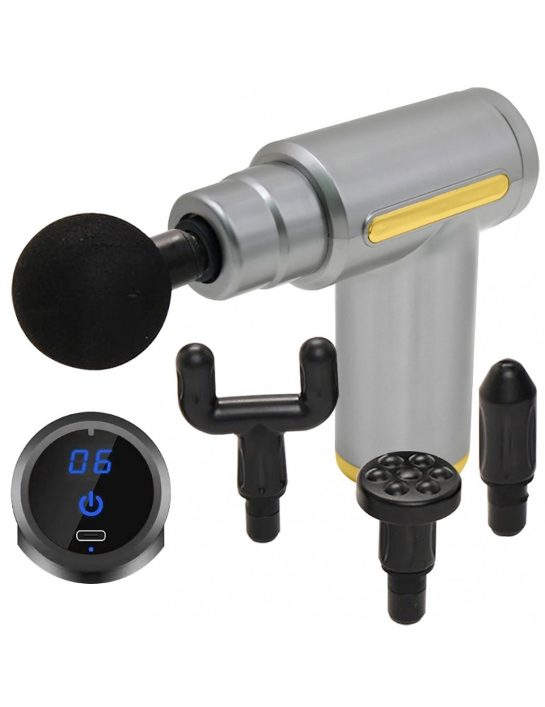 Pistola Masajeadora 4 Cabezales Con Pantalla Táctil