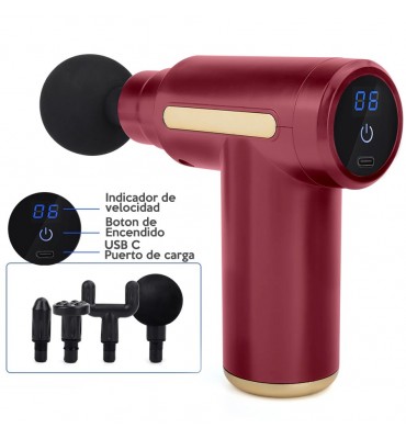 Pistola Masajeadora 4 Cabezales Con Pantalla Táctil
