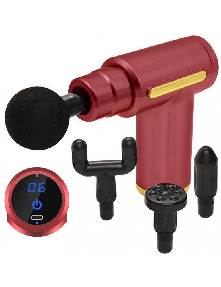 Ideal para recuperación deportiva y rehabilitación, cuenta con pantalla tactil indicador de 6 velocidades de masajes y 4 cabezales para diferentes tratamientos y partes del cuerpo y alimentacion por USB C.