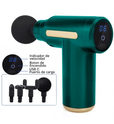 Pistola Masajeadora 4 Cabezales Con Pantalla Táctil