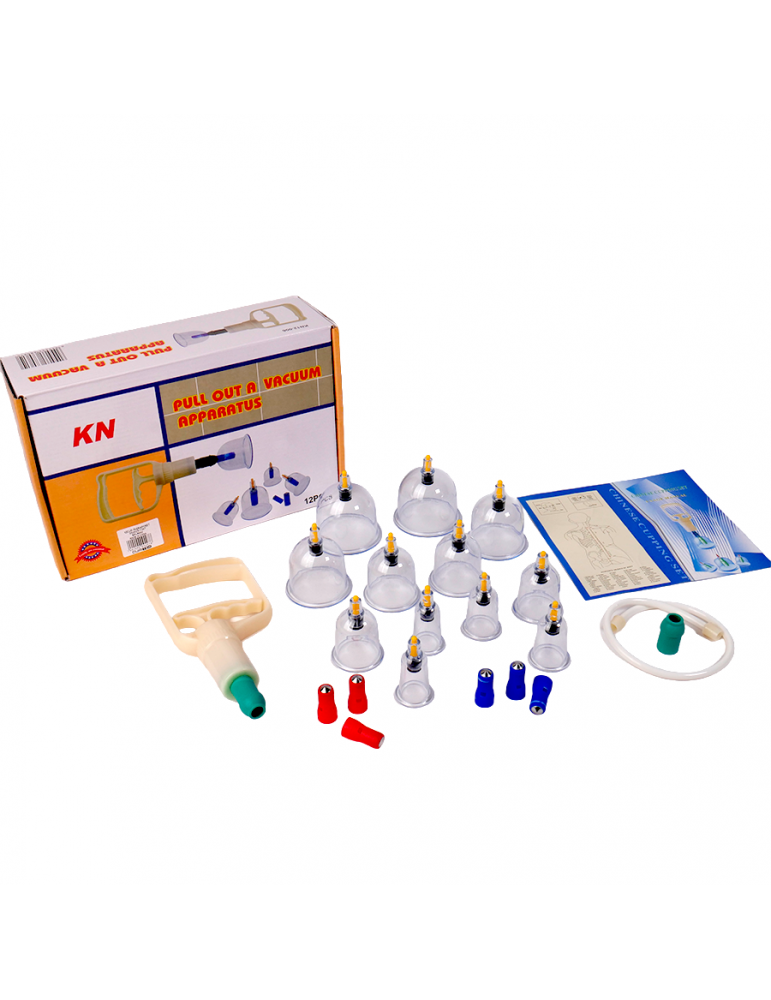 Set de 12 ventosas de Medicina China ideales para la ventosaterapia, un método terapéutico tradicional ayuda en el tratamiento de contracturas, rigidez muscular, y problemas de circulación al activar el flujo sanguíneo y linfático.