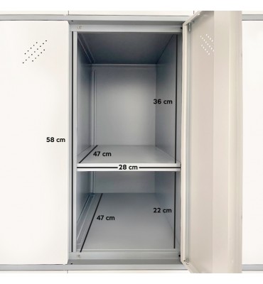 • Dimensiones internas de locker sin estante: 47 × 58 × 28 cm (profundidad × alto × largo)