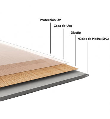 • Material: Núcleo de piedra SPC con capa superior de vinilo