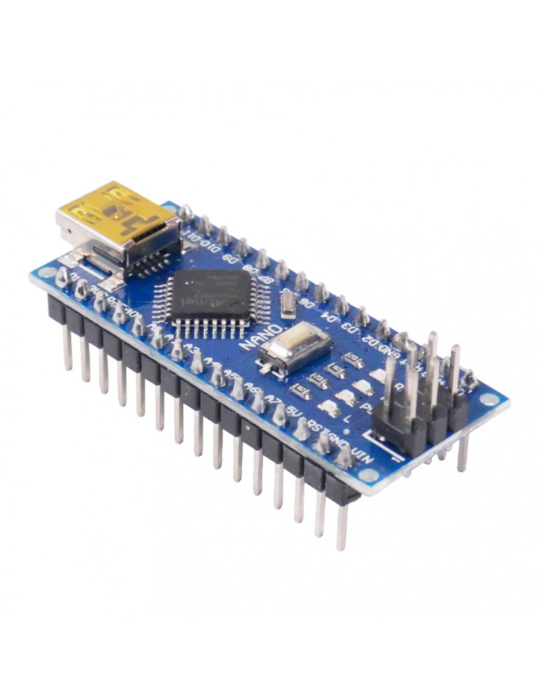 El Arduino Nano es una pequeña y completa placa basada en el ATmega328p (Arduino Nano 3.0) que se usa conectándola a una protoboard.