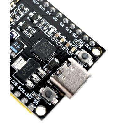 Placa de desarrollo con microcontrolador ESP32, ideal para proyectos de IoT con Wi-Fi y Bluetooth de modo dual. Equipado con un puerto USB Tipo C para una conexión más robusta, reversible y compatible con cables actuales.